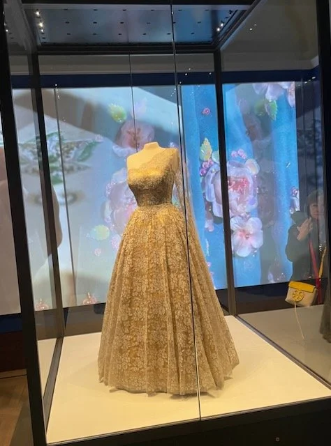 The exhibition, which opened last week, has been a smash hit from the start. The outfits are on display in the King’s Gallery, which used to be the Queen’s Gallery, built on the site of the chapel bombed by the Germans in the Blitz. Usually, large fashion exhibitions take place at the Victoria and Albert Museum, and this one has a similar feel.