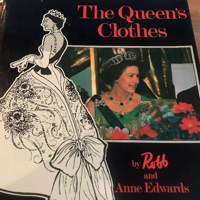 The details were explained in a book called The Queen’s Clothes, which I was given in 1977, and still have on my bookshelf. It included some of Norman Hartnell’s sketches for the Queen, like the ones also included in the exhibition, which are lovely to see, alongside the finished gown.